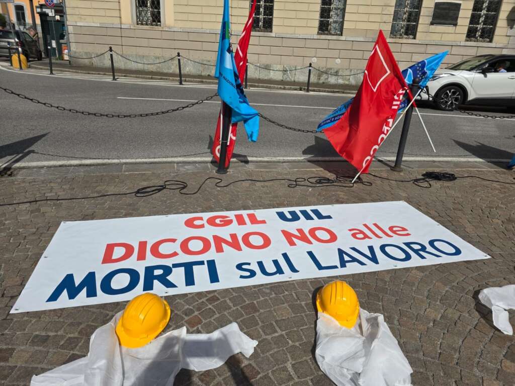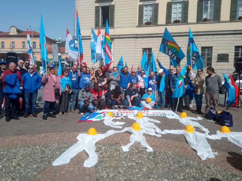 A Lecco i sindacati hanno organizzato un presidio in piazza Diaz, di fronte al municipio, e inscenato un flash mob sul tema della sicurezza nelle aziende e nei cantieri.